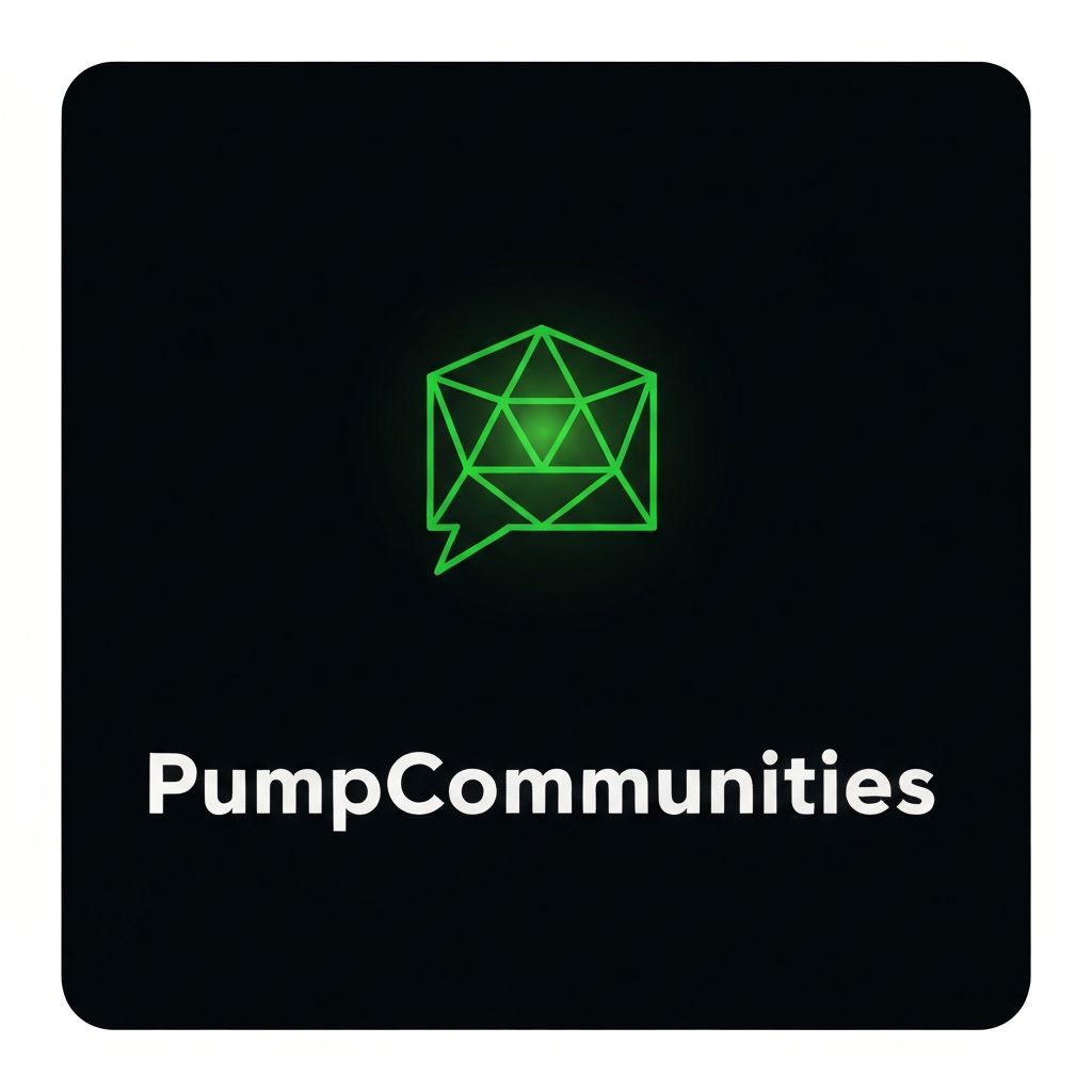 The PumpCommunities logo features a speech bubble icon representing community and conversation, with a green gradient symbolizing growth and energy.